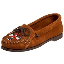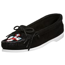 Thunderbird Mocs: Classic style BIG SAVINGS! Beads are back! My fashionable friends tell me beaded mocs are all the rage for the style crowd. Of course the comfort of Minnetonka Mocs has never gone out of style as far as I'm concerned. Here's what makes them best in the moc biz: Rustic soft suede upper... complete with better-fitting handsewn toe! Classic beaded thunderbird on foot; Stitched-on boat sole is sipped (think wiggly lines) for traction; Cushioned insole for all-day comfort; Front tie for custom fit; Each weigh approx. 13 ozs. Get yours now and get in-step with the latest style! State Color and Size. Medium width. Order ONLINE Today! Please Note: This item is shipped directly from the factory. Please allow an extra 1-2 weeks for delivery... sorry no express shipping available. We are unable to ship factory direct items to Canada Puerto Rico or APO or FPO addresses. Ladies' Minnetonka Moccasins Suede Thunderbird Moc with Boat Sole