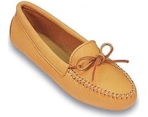 Ladies Leather Deerskin Moccasin. Fully lined with deerskin for the ultimate in luxurious comfort. Fully padded insole. Softsole. There's a reason everyone else tries to copy and mimic the comfort of deerskin. Only because there's nothing else like it!! Comfort can't be beat.