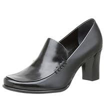 These pretty and versatile dress loafers from Franco Sarto are a combination of tailored style and comfort. Smooth leather upper in a slip on dress loafer style with an apron style toe and side stitching accents. Slightly flared loafer instep for a stylish touch. Fully lined interior with a cushioned comfort insole. Flexible smooth dress style outsole with crepe style traction sole. Stacked 2 1/2 inch dress style stabilized high heel.