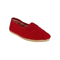 Ultra comfortable Toms inspired women's slip-on flat shoes fashioned in a canvas upper and a flexible rubber sole with padded insole. Elastic goring at instep for easy slip on and off. Shipped new without shoe box. Shipping time: 5-10 days. Save on shipping with purchase of additional flats. SIZE RUN: True to size. Material: Canvas. Style Name: Elena(SKU: ELENA01-RED-CAN)